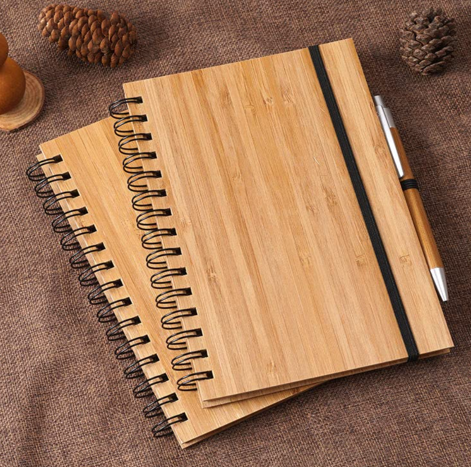 • THE BEST TRAVEL FRIENDLY NOTEBOOK: This mini notebook is a must have accessory for every traveller. Thanks to the hard cover of this notebook you can write comfortably, without needing any table or desk for support. The Bamboo notepad comes with a beautiful pen, securely attached to the notebook with an elastic band, ensuring that your writing supplies will be just there when you need them!