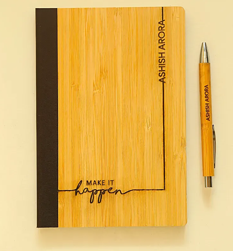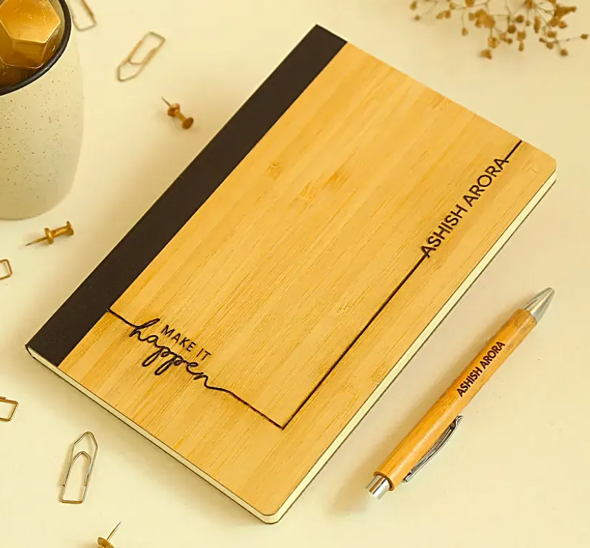 Matching Personalised Bamboo Pen with metal highlights and stylus